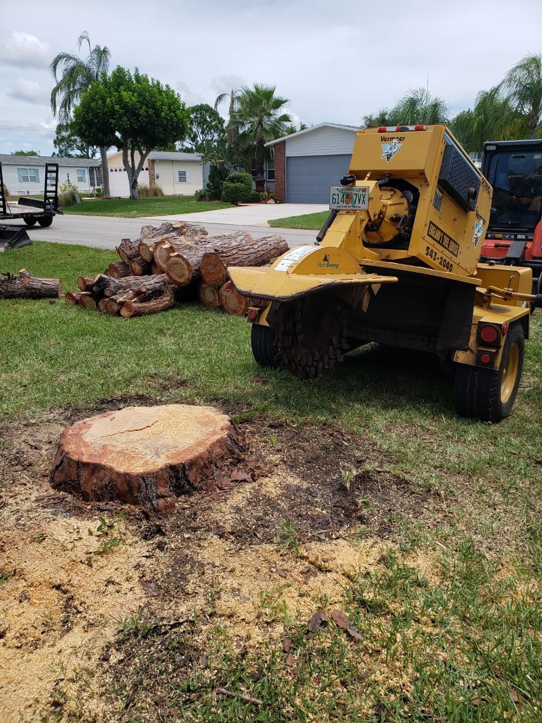Need stump grinding? Our equipment can handle the job — we have everything from small grinders to a large Vermeer stump grinder.